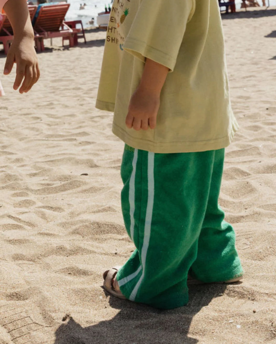 True to size, relaxed fit. We recommend sizing up for a true oversized fit or if the child is tall.