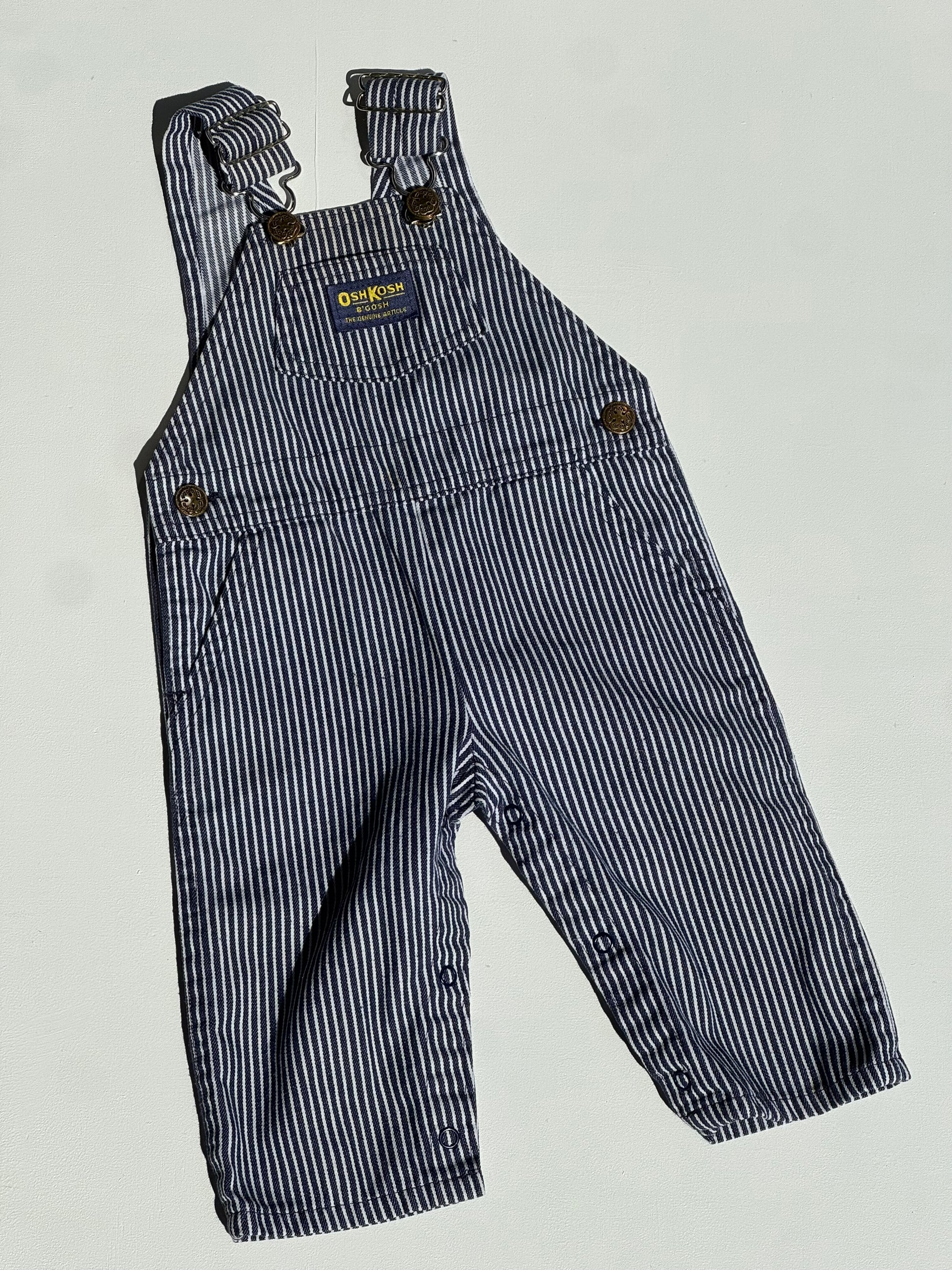 navy striped Oshkosh overalls - 6/9m